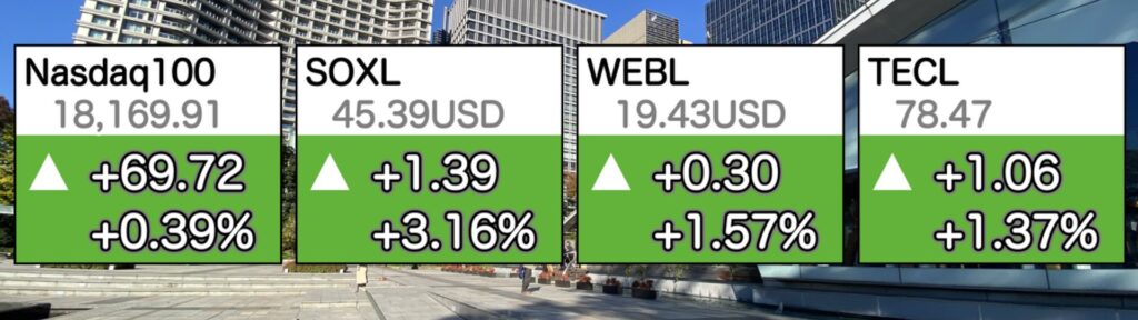 FANG+は三日連続の上げでした