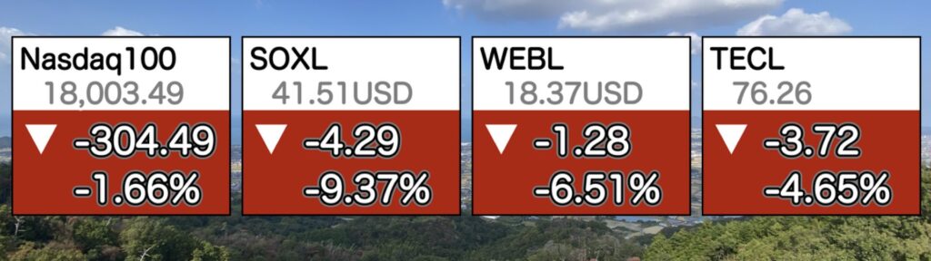 特にSOXLは中国によるアメリカの制裁による報復措置報道があり、強い下げ