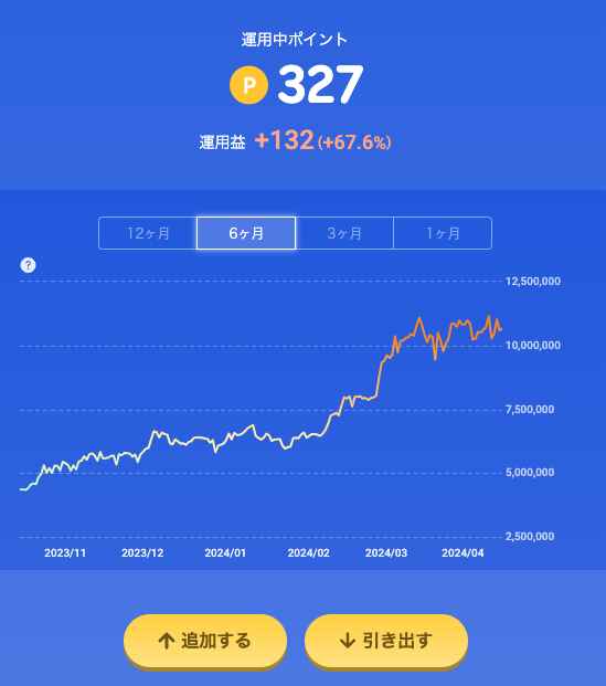 次から、毎回ポイントを突っ込んでおこう。その前に、運用ポイント(株)を全額引き出そう。これはタイミング悪いかな。。