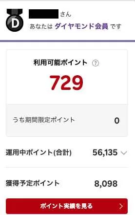 お、729ポイントある、そしてよく見ると楽天ポイント運用(株式)が5万円もある