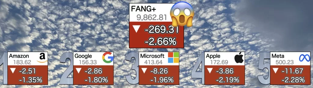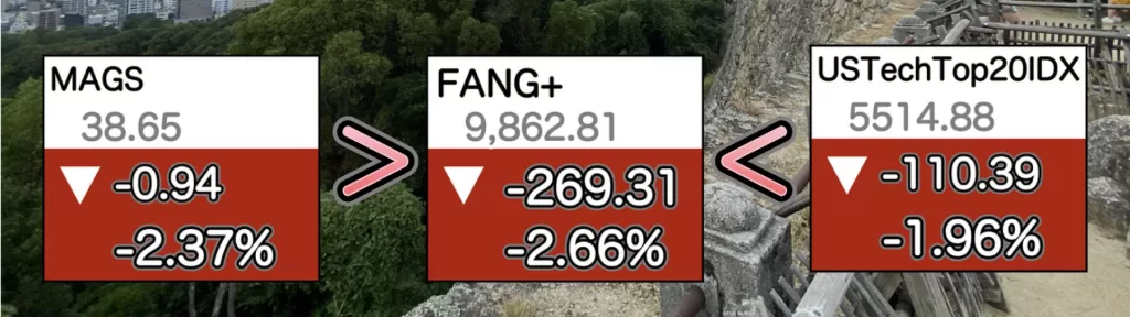 どれもきつい下げ。 中でもFANG+がやられてますね。