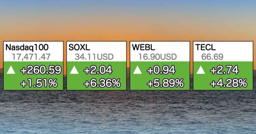 グロース、レバレッジ Nasdaq100, SOXL, WEBL, TECL