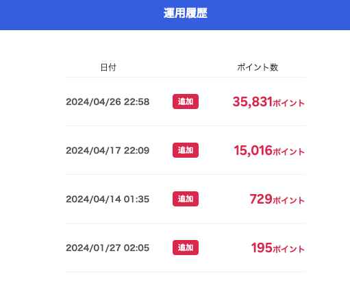 楽天ポイント引越履歴