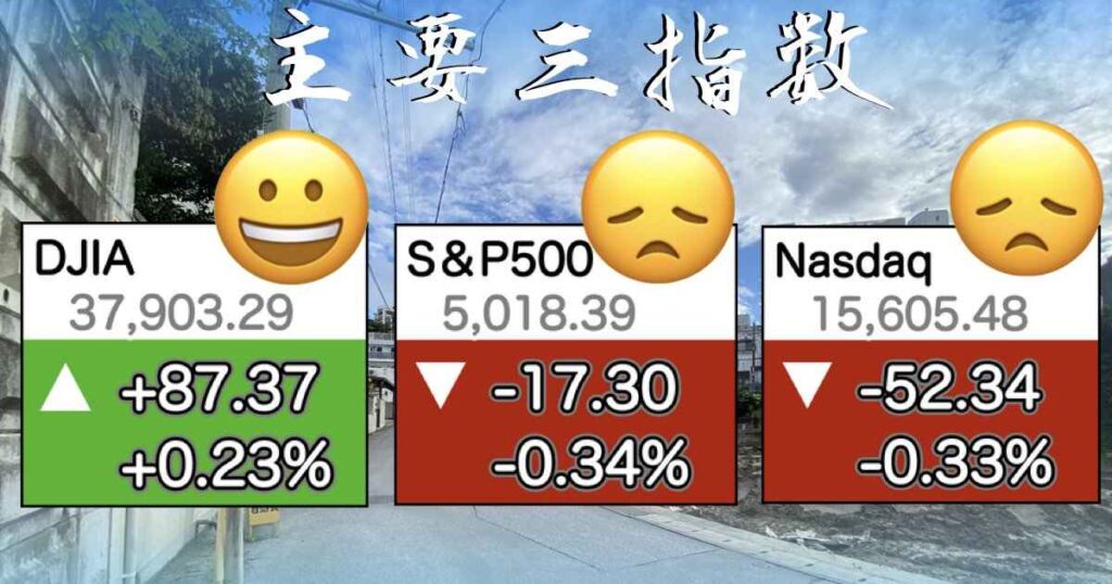 主要指数 ダウ、S&P500、NASDAQ