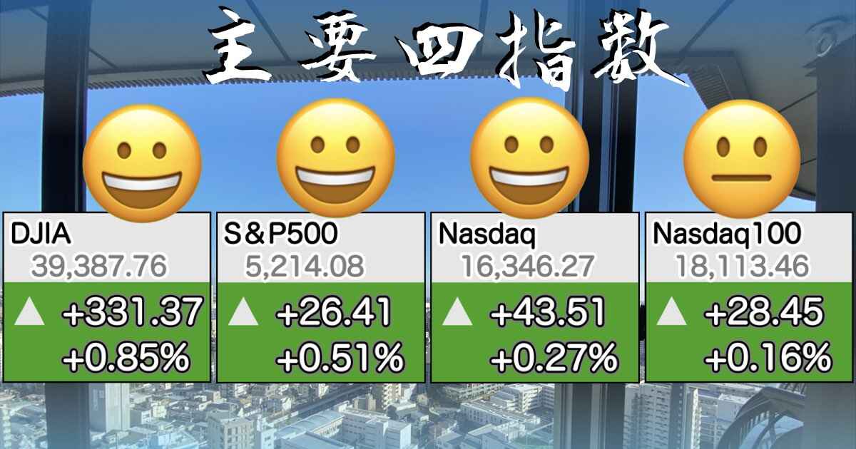 【米国株】5/10 主要指数みんなあげ でもグロース弱い ダウ7連