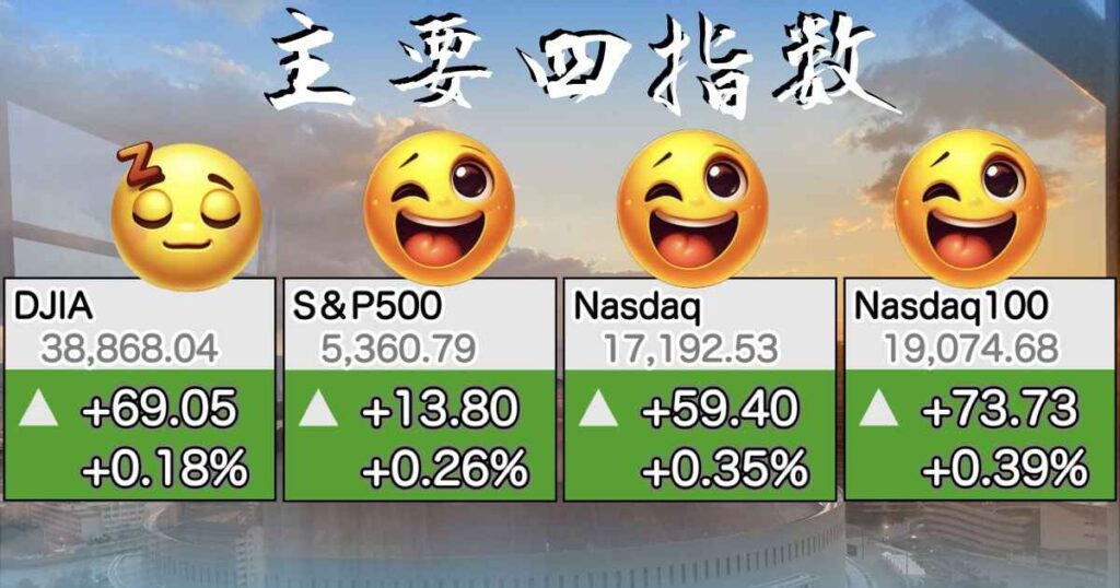 4指数とも良い上げ ダウ以外は史上最高値更新