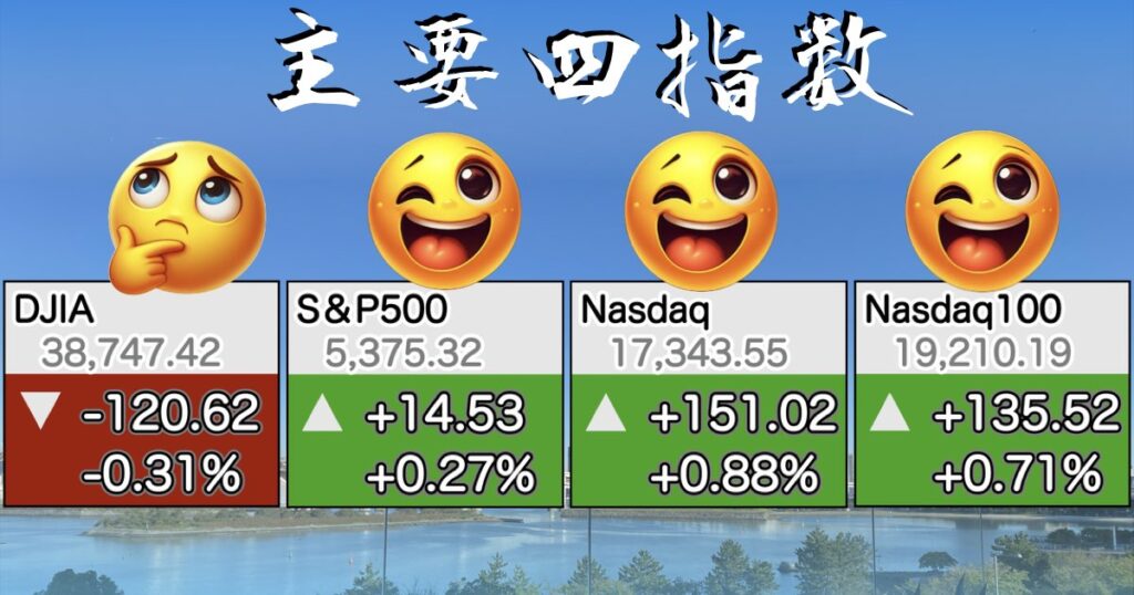 主要4指数 ダウ、S&P500, Nasdaq, Nasdaq100