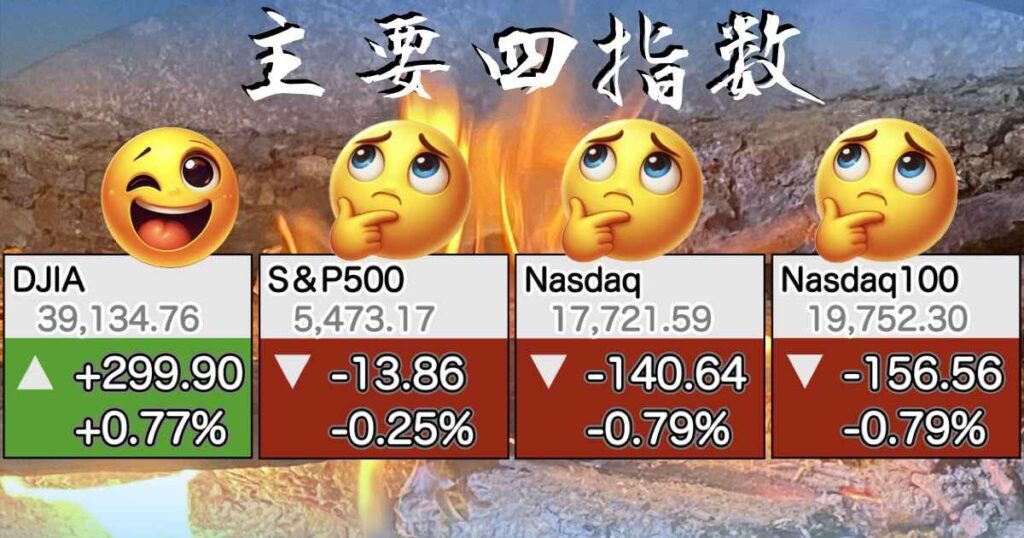 主要4指数 ダウ、S&P500, Nasdaq, Nasdaq100