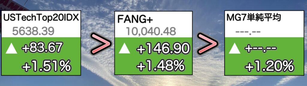FANG+とMagnificent7 とUS Tech Top 20の指数騰落率